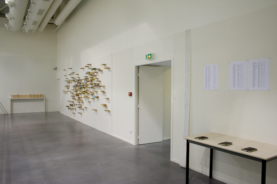 Fin 2012, les trois installations (carnets, camaïeu et constellation) qui composent à cette époque infini-lectures sont exposées au FRAC durant l’exposition collective C’est incroyable comme on grandit.